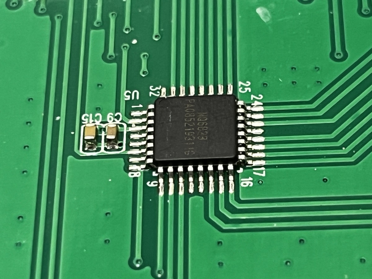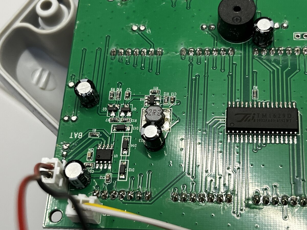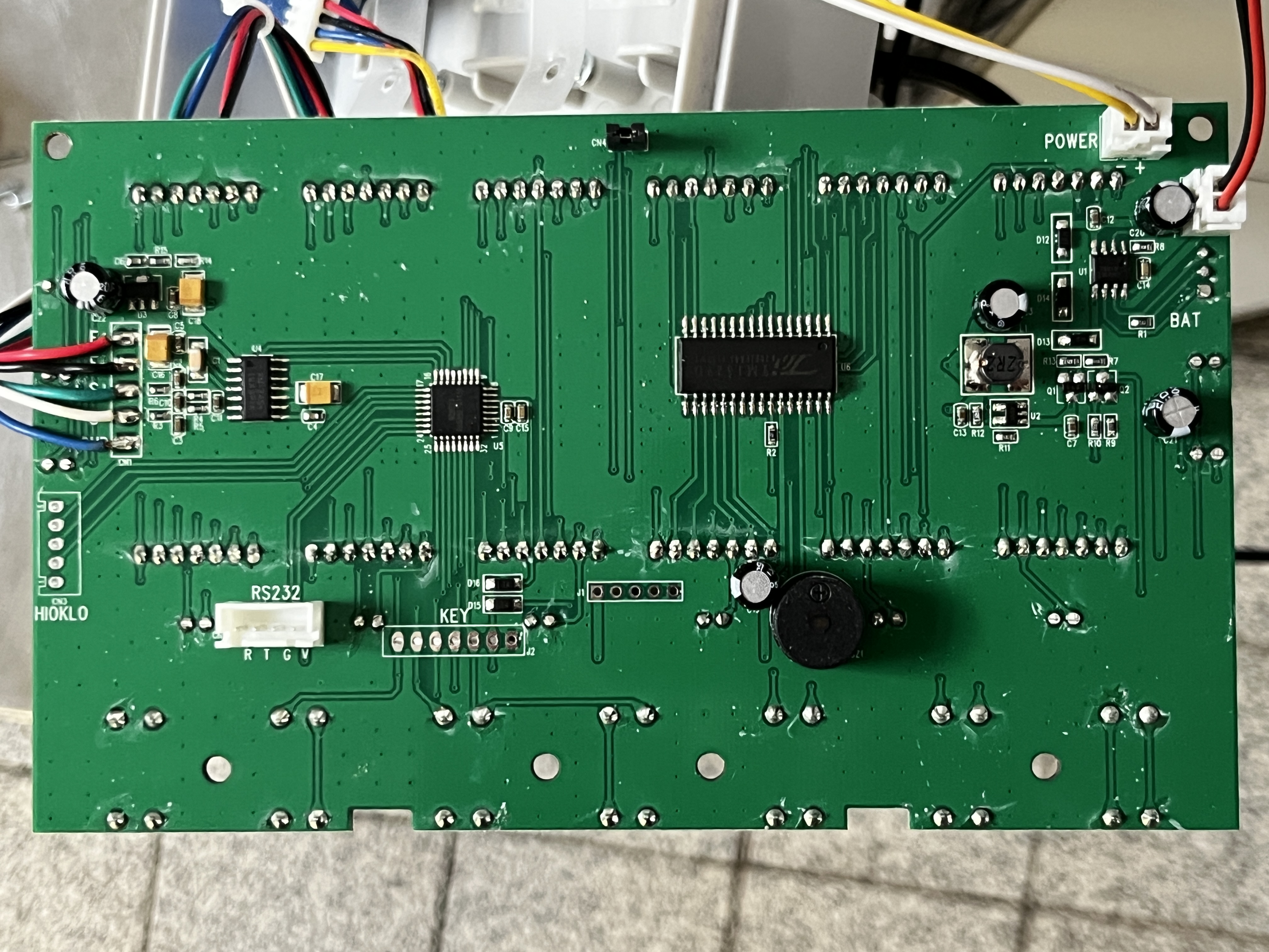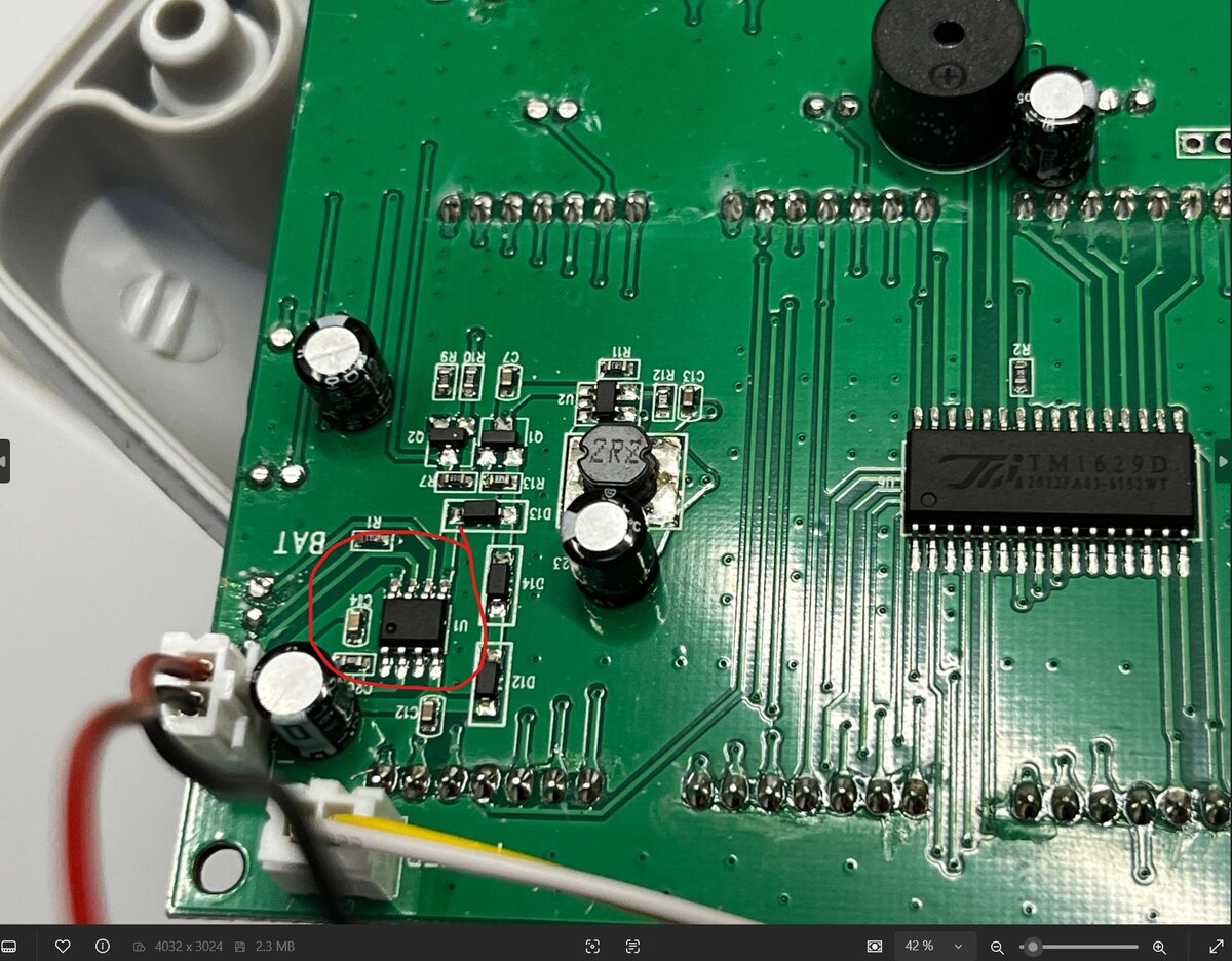 Hier noch ein paar Bilder. Der rot eingekreiste Chip war mal bei einer anderen Platine defekt (keine Waage, eine Waschmaschine), könnte das hier auch der Fall sein?