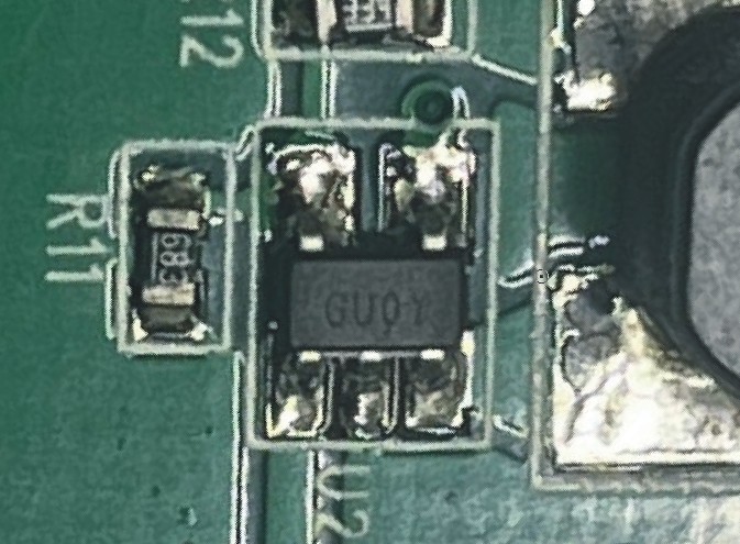 Rico schrieb: > Der U2 Typ ist schwer zu lesen, ich denke es ist: GUOY Man muss den Hals verdrehen wie eine Eule. Oder man postet es gleich ordentlich. Mal sehen was mir zu dem einfällt. Edit: Ein BL8028, was merkwürdig ist. Ich hatte einen Aufwärtsregler erwartet.