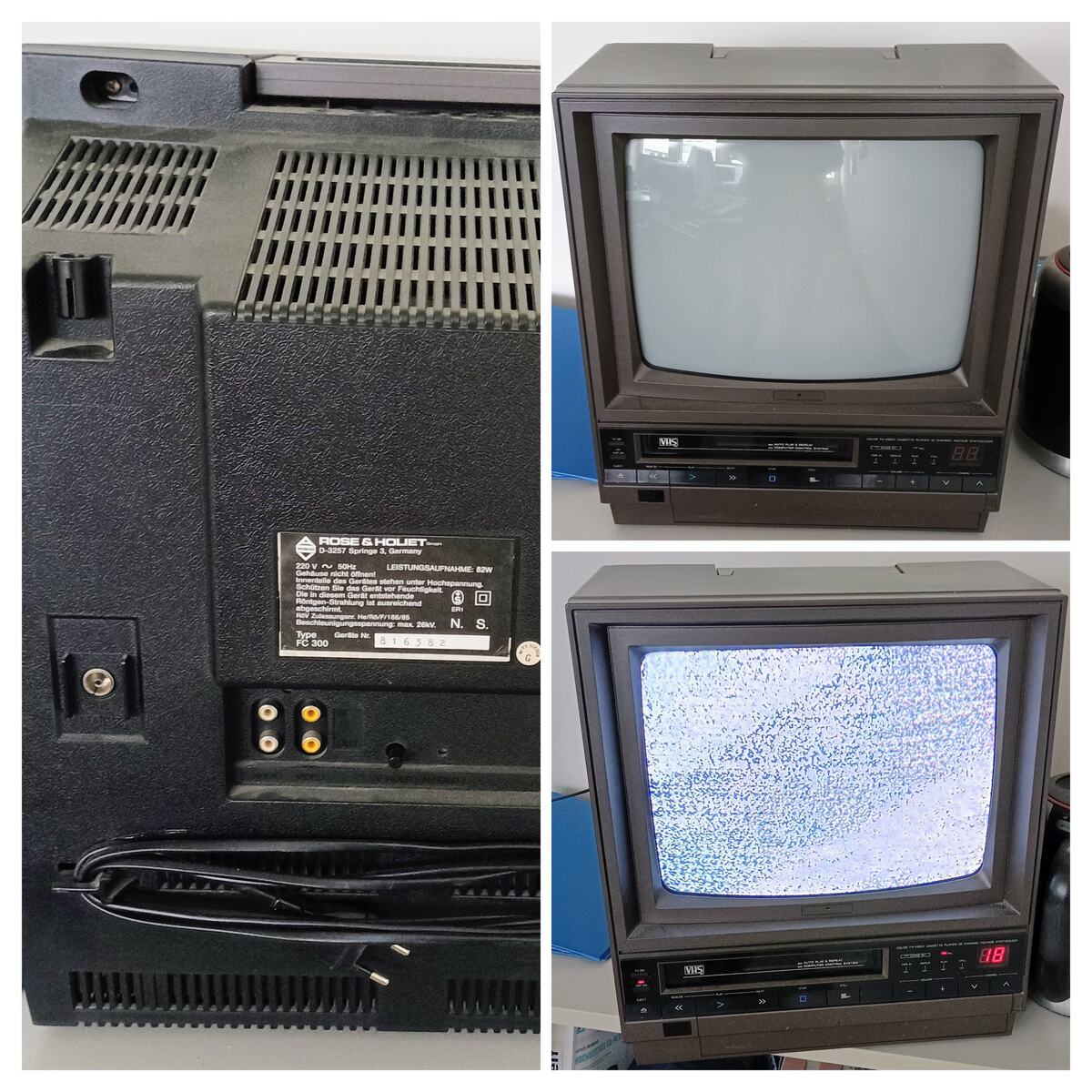 Fernseher mit VHS Video Player Zu verschenken Rose &Holliet FC300 Antennenbuchse, Video/Audio In/Out. Fernseher geht, VHS hab ich noch nicht getestet. Raum München oder Nürnberg.