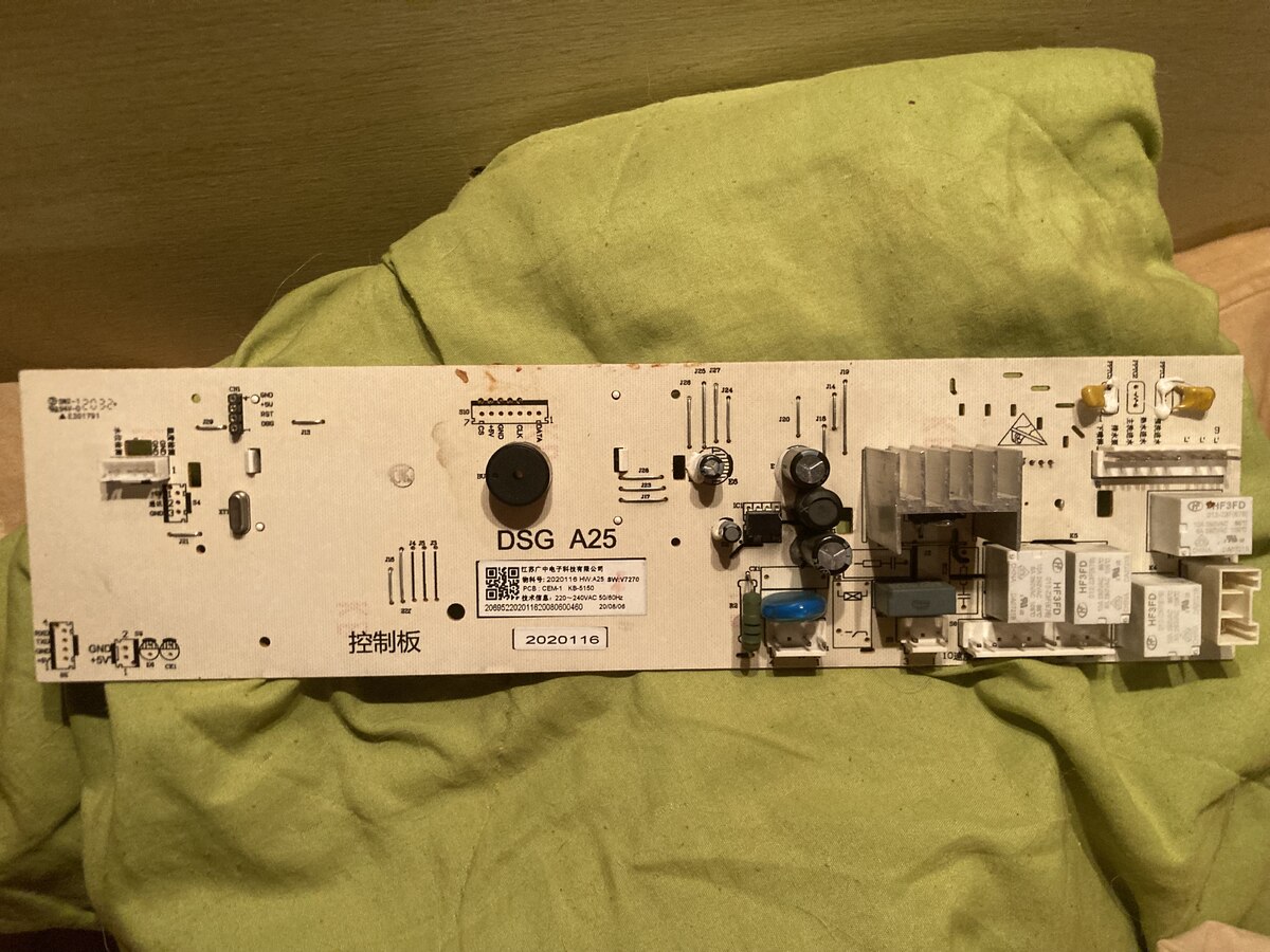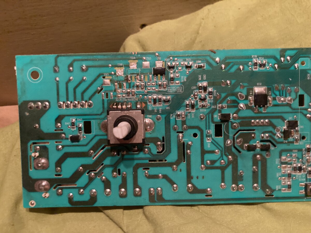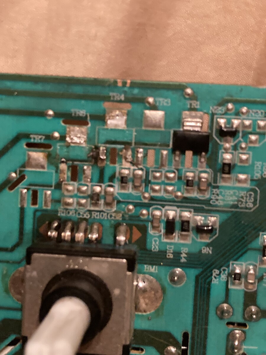 Hallo! Auf dieser Platine ist leider ein Bauteil durchgebrannt. TR6, ich hab’s schon ausgelötet. TR4 und TR1 sind baugleich (TR4 hab ich zu testzwecken auch gerade ausgelötet). Leider komm ich bei der Bestimmung nicht weiter. Hier einmal alle Daten: Hisense WFHV9014 Waschmaschine Typenschild siehe Bilder Bauteil hat keinerlei Aufschrift, 3 Pins, ein großer oben, zwei kleine unten ~5mmx2mm Messungen ergeben zwischen beiden kleinen Pins ~0,55V in beide Richtungen. Kombinationen mit dem großen Pin allesamt OL. Kann und mag mir jemand bitte helfen? Liebe Grüße Cordt