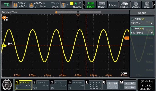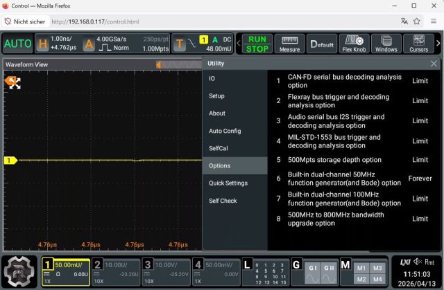 Hallo, es gibt ein 4 Kanal Oszilloskop mit 500 MHz Bandbreite, 4 GSa/s Abtastrate, 12 Bit AD Wandler, 100 Mpts Speichertiefe und einem 17,8 cm Touchdisplay mit einer Auflösung von 1024x600 Pixel. Aufrüstbar zum MSO mit 16 Kanal Logik Analysator und 2 Kanal 100 MHz Funktionsgenerator. Serielle Decoder für I²C, SPI, RS232/UART, CAN und LIN sind bereits enthalten! Die Option AFG50 ist (legal) bereits enthalten mit Unterlagen. Eine Rechnungskopie vom 29.10.2025 liegt bei – das Gerät hat noch bis Garantie bis 28.10.2028, ist nicht oft benutzt worden und sieht aus wie neu, mit allem Zubehör und OVP, jedoch ohne den „Rigol Bag 800“, der ebenfalls Bestandteil der Lieferung war, den habe schon separat abgegeben. Die Unterlagen sind z.B. zu finden unter: https://www.batronix.com/versand/oszilloskope/Rigol-MHO954.html Warum der Verkauf? Das Gerät ist wirklich sehr gut, aber ich bin ein alter Knacker, der schlechte Augen hat und auf dem Bildschirm die kleine Schrift nicht mehr wirklich gut entziffern kann… mit dem WEB Interface ist das Ok, aber das ist für mich auf Grund meiner Arbeitsplatz Verhältnisse sehr umständlich. Übrigens ist das Web-Interface deutlich besser als bei meinem „alten“ MSO5354. Abholung / Übergabe Raum Karlsruhe wäre schön, kann es aber auch versenden. Im Umkreis von ca. 50km kann ich auch liefern oder entgegenfahren. Ich würde gerne 880,-€ haben, incl. Versandkosten innerhalb Deutschland. Wenn ich nicht versenden muss gibt es noch kostenlos eine schwenkbare Wandhalterung dazu… Übrigens beträgt die gemessene Bandbreite (-3dB) ca. 650Mhz – siehe Bild. Ich habe kein Paypal, daher nur mit Überweisung. OVP ist dabei - hatte ich noch vergessen. Gruß Bernd