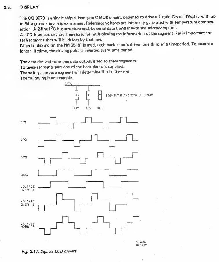 Ohne passende Ansteuerschaltung wird ein Display nicht funktionieren. Das ist ein Grafikdisplay mit dreiphasigem Multiplex. Es könnte sein, dass das nur eine Sonderausführung eines Standard-Grafikdisplays ist, und man weitgehend kompatibles kaufen kann. Es ist jedenfalls kein übliches Textdisplay. Hier im Forum wurde gelegentlich das Gerät schon angefragt, außer diesem Thread hier noch 4 weitere: [V] Philips 2519 Tischmultimeter Stefan 1 04.04.2026 14:33 Suche Philips Digitalmultimeter PM2519 oder PM 2521 Helge 5 04.11.2023 22:45 Verkaufe diverse (alte) Messgeräte Fabian G. 35 03.09.2020 12:28 Altes Philips/Fluke PM2519 Tischmultimeter Reparatur / Bauteilbeschaffung KörperKlaus 20 22.04.2016 23:47