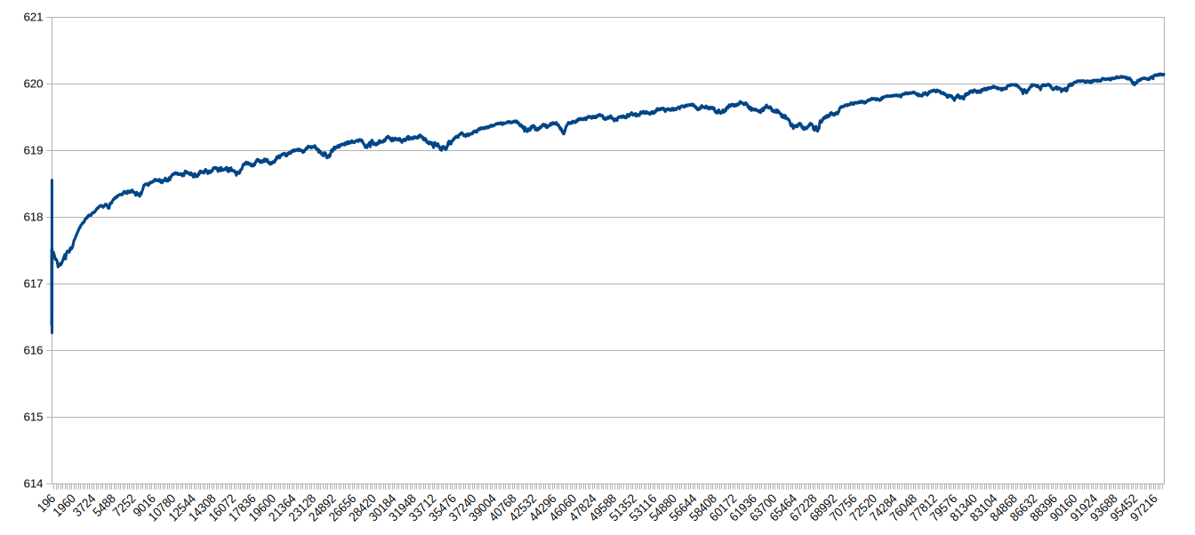 Florian schrieb: > Geplottet kann man eine Aufladekurve erkennen, von daher gehe ich davon > aus, dass sich etwas auflädt bzw. in Sättigung geht. Du redest über 0,4 %. Eine Aufladekurve würde über 100% laufen. Mit welcher Genauigkeit hast du bei deinem Aufbau die Temperatur kontrolliert?