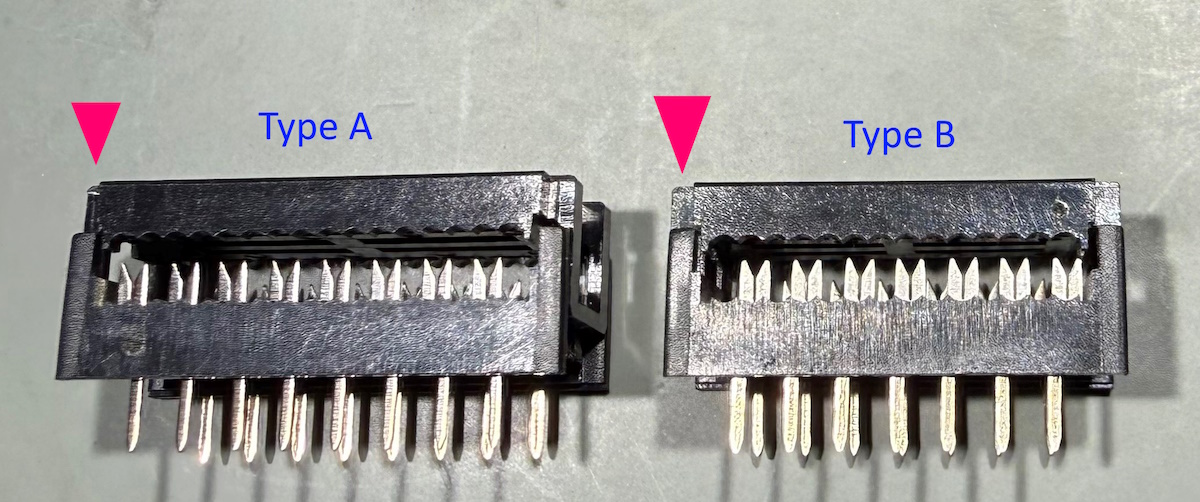 Hallo zusammen, heute habe ich schmerzlich erfahren müssen, dass es bei den IDC-Steckern, zum Stecken in 7.62 mm breite DIL Fassungen, verschiedene Kontaktvarianten gibt. Der Unterschied zwischen den Typen A und B ist, dass einmal die rot markierte Ader auf Pin1 oder auf Pin 16 gelegt wird. Ich hoffe, man kann das auf dem Foto erkennen. Die Schneidklemmen sind unterschiedlich angeordnet (um ein 1.27 mm Raster versetzt). Jetzt habe ich leider nur einen 14 poligen Stecker in der Variante B in meiner Kollektion und bräuchte aber einen 16 poligen. Kann mir jemand mit einem 16-poligen Stecker in der Version B aushelfen? Die erste Ader muss also auf Pin16 kontaktiert werden. Gruß Engelbert
