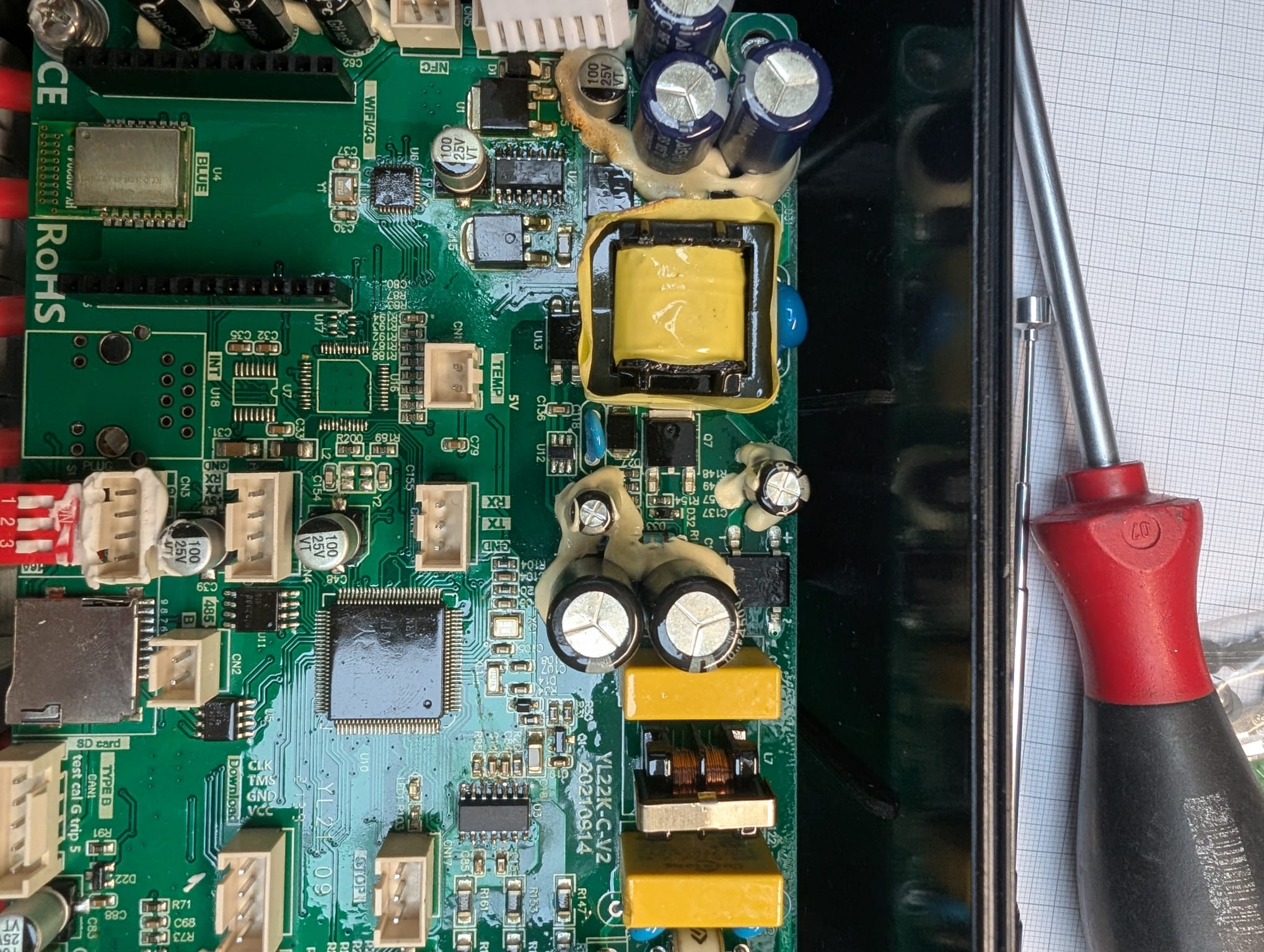 Hallo zusammen, ich habe hier eine China Wallbox, bei der das SNT nicht starten will. Angeblich ist die Box neu. Das SNT ist mit einem NCP1253 PWM Controller (U12) aufgebaut https://www.onsemi.com/download/data-sheet/pdf/ncp1253-d.pdf Die Ausgangsspannungen und auch die VCC des NCP1253 ist am pumpen und nicht stabil. Mit der Wärmebildkamera waren zwei TL074I (U2 + U3) leicht erwärmt, diese habe ich der einfachheit halber einfach getauscht, aber ohne Erfolg. Desweiteren habe ich alle größeren SMD Dioden im SNT grprüft. Es hat keine einen Schluss. Lege ich externe 5V an den Controller geht dieser auch an und die Stromaufnahme ist unaufällig. Desweiteren habe ich alle möglichen Stecker abgezogen, um einen Fehler im externen Bereich aus zu schließen. Oszi und Trenntrafo sind vorhanden. Habt ihr Tipps für mich zur systematischen Fehlersuche, warum das SNT nicht startet? Vielen Dank und viele Grüße Chris
