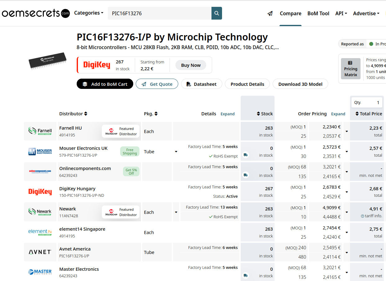Bildquelle: https://www.oemsecrets.com/compare/PIC16F13276?ccy=EUR&ctry=HU