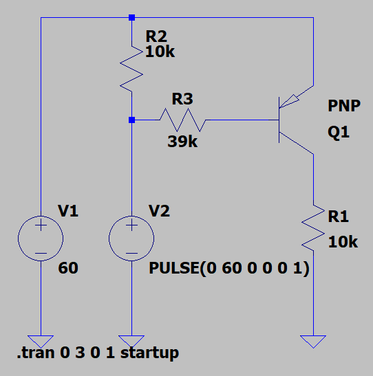 Hi zusammen, ich hänge leider bei wohl etwas ganz trivialem. Im Anhang habe ich eine Beispielschaltung eines PNP Transistors und einer Quelle, die mir die Basis über R3 (Basiswiderstand) auf Masse zieht. R2 hängt absichtlich nicht direkt zwischen Basis und Emitter, um mein Verständisproblem zu verdeutlichen. In dem Moment, in dem V2 gegen Masse schaltet (in Wirklichkeit ein TL431), fängt die Emitter-Basisstrecke an leitend zu werden und ich habe einen Basisstrom von (60V-Ube_sat)/R3 fließen. Ube liegt in dem Moment bei ~0.7V, je nach gewähltem Transistor. Die meisten PNPs, haben eine angegebene Ube_max von ~5-10V. Muss ich meine Ube-Strecke in diesem Fall wie im Bild noch schützen? Oder kann ich davon ausgehen, dass die Ube-Strecke schnell genug leitend wird und sich die Ube_sat automatisch einstellt auf Grund des PN-Übergangs? Falls ich die Ube-Strecke noch schützen sollte, was wäre dann die gängige Lösung? 1) Spannungsteiler, in dem R2 direkt zwischen Emitter und Basis gehängt wird? 2) Zener-Diode zwischen Emitter und Basis? 3) Zener-Diode in Reihe zwischen Basis und R3? Vielen Dank und viele Grüße Hendrik
