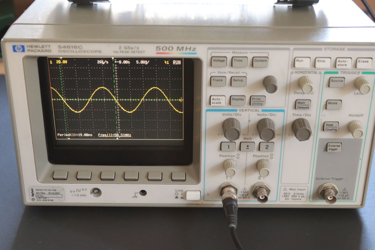 Das Bessere ist der Feind des Guten... Deswegen verkaufe ich mein altgedientes Oszi mit echten 2GSa/s und Farb-LCD. Preis: 250 Euro VHB. Ich habe vor einiger Zeit das NVRAM mit neuer Batterie ausgestattet: https://www.wolfgangrobel.de/electronics/nvram.htm Das Gerät funktioniert einwandfrei und ohne Fehlermeldungen. Versand und Abholung ist möglich, den Aufstellfuß besitze ich - soweit ich mich erinnern kann - nicht. Das Rigol ist nicht mit im Lieferumfang enthalten. Das Rigol-Foto (5) soll nur zeigen, dass das Signal auf beiden Oszis gleich aussieht.