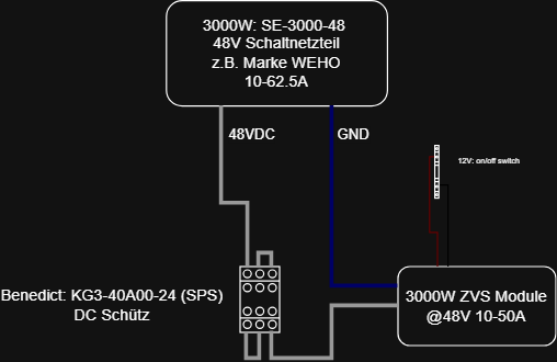 Hi, ich habe nach Beiträgen hier in den Foren gesucht, viele befassen sich mit Eigenbauten von ZVS Modulen, gehen aber sonst nicht auf die wichtige Frage ein, wie überhaupt ein ZVS Modul sicher betrieben werden kann. Anwendungsfall: Entwicklung eines Induktions-Sinterofens für NE-Metalle Komponenten: 3000W SE-3000-48 (Marke z.B. WEHO o.ä.) z.B. auf amazon: "Upgrade Transformer DC48 V 62.5 A 3000 W Power Supply" https://www.alibaba.com/product-detail/Industrial-AC-DC-SE-3000-48_1601649225861.html Strom ist einstellbar, entweder durch auf der Platine verbauten Poti oder separaten 0-5/0-10V Signal Eingang. Das Netzteil verfügt über Überstrom-Sicherung und soweit ich sehe eine Reihe von Snap-In Elkos zur Pufferung des Ausgangs. Steuerung erfolgt über einen STM32. Dieser schaltet über 24VDC diverse Relais oder Schütze. u.a. Benedict KG3-40A00-24 DC Leistungsschütz. Aus Mangel an Alternativen bin ich auf dieses ZVS Modul gestoßen: https://de.aliexpress.com/item/1005009437634532.html Es verfügt über Unterspannung, Überstrom, Überhitzung Schutz der Mosfets und einem separaten On/Off switch, der sich auch durch eine Steuerung schalten ließe. Kühlung der Spule erfolgt durch Wasserkühlung. Das Modul wird maximal mit 2.5kW betrieben und dann auch nur wenn CEE Stecker und 1ph Starkstrom verfügbar sind. Während der Entwicklung mit ca 1kW, <=21A. Die Schaltung der Leistung erfolgt nach dem Schema: -> ZVS aus -> Schaltung des DC Leistungsschützes ohne Last -> Einschalten des ZVS Moduls Ausschaltvorgang in umgekehrter Folge. Fragen: Ich bin mir nicht sicher wie die Last die am Ende auf das Netzteil wirkt aussieht. Es ist ja ein Schwingkreis, die Schaltung der Kondensatoren erfolgt aber auf und durch das Modul. - Wie wirkt ein ZVS Modul nach außen hin? (Ohmsche Last aber in Sinusform, dynamisch?) - Wie sieht es mit Inrush-current aus? (wenn nicht als kapazitive Last nach außen, dann eigentlich kein Problem?) Meine Sorge ist, dass die Überstrombegrenzung des Netzteils und die Ausgangspuffer Elkos des Netzteils nicht für solche dynamischen Lasten ausgelegt sind. Erste Recherche (und ja AI), schlagen parallele Pufferkondensatoren (4x4000uF snap-in) (nicht als RC-Glied?) direkt hinter dem Netzteil vor. Ist das eine und einzige Lösung? Problem was ich hier sehe ist die Entladung derselben bei Abschaltung und mit potenziellen kV Entladungen im Ernstfall nicht sonderlich sicher. Möchte auf DIY bei allem was nicht digitale DC Schaltung ist möglichst verzichten und ziehe Kaufteile vor. Danke schonmal für eure Zeit und Antworten.