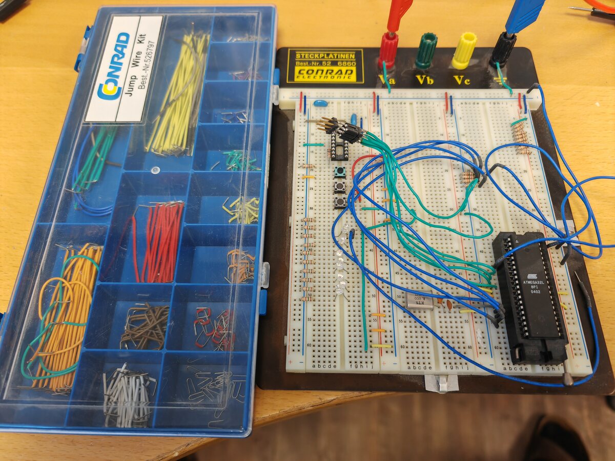Verkaufe Steckbrett mit Testsockel, Drahtbrücken und Mikrocontroller. 20 Euro mit versicherten Hermes Versand Bezahlung PayPal Freunde ---VERKAUFT---