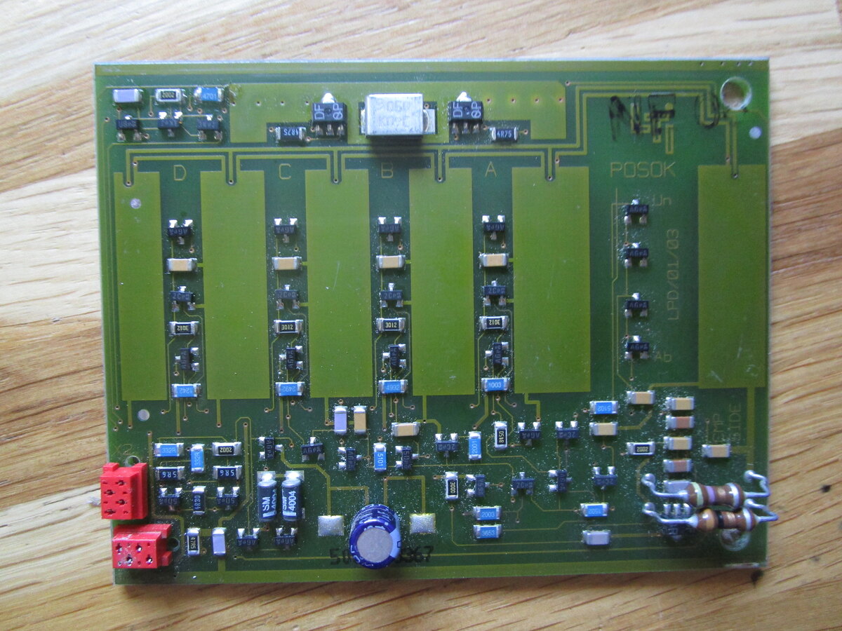Hallo, ich habe Rollbandanzeigen zur Preisanzeige von einer Tankstelle. Ein Motor bewegt das Band und zur Positionserkennung der jeweilig angezeigten Ziffer sind auf dem transparenten Band (metallisierte?) Muster/Codes angebracht. Auf der Platine darüber sind auf beiden Seiten (kapazitive?) Flächen anhand derer die Position erkannt wird. Es gibt keinen Mikrokontroller oÄ auf der Platine. Kann jemand sagen, wie sowas funktioniert? Wie erkennt man kapazitive Änderungen an 5 Fächen und vorallem wie geht das (analog) über nur vier Leitungen incl. Motor? Viele Grüße und vielen Dank Martin