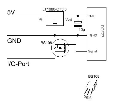 War nicht eingeloggt. Deshalb kann ich leider nicht bearbeiten. Habe hier etwas über das Reichelt Modul gelesen: https://www.mikrocontroller.net/articles/DCF77-Funkwecker_mit_AVR Dort wird erwähnt, dass das Reichelt Modul ein Push Pull Ausgang hat. Sprich meine Verschaltung mit Pulldown wäre umsonst? Was bringt mir dann überhaupt der BS108? Minimieren des Ausgangsstroms (bei mos ja nicht kontinuierlich, sondern nur beim aufladen)? Sehe die Vorteile nicht mehr so richtig. So könnte ich ja gleich direkt in den Atmega ohne pulldown oder pullup Widerstand. Was spricht wenn dagegen? Gruß