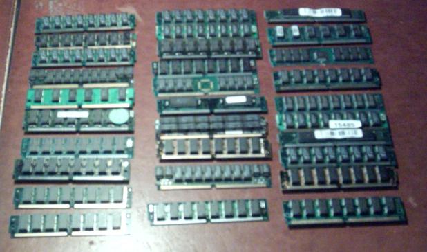 Hallo, ich habe ich 30 alte Speichermodule hier liegen. Es sind wohl alles PS2-SIMMs, evtl. auch einige EDOs. Kapazität dürfte zwischen 1MB und 16MB liegen, ich weiß es definitiv nicht. Sie dürften alle noch funktionieren, aber auch hier eindeutig keine Garantie von mir. Kann die jemand gegen Portoübernahme gebrauchen? Wenn nicht, werden sie demnächst fachgerecht entsorgt. Meine eMail: tmz73@tiscali.de Gruß Thorsten P.S.: Sorry für das im Grunde genommen nutzlose Foto, es soll eigentlich nur einen groben Überblick verschaffen. Naja, bald ist ja Bescherung :)