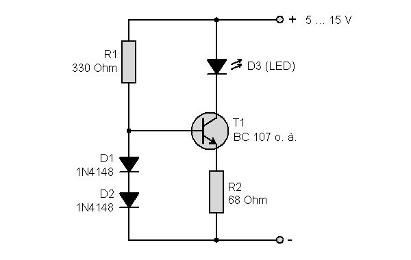 Oder was hällst du davon, statt LED, Rx. Der Strom beträgt 10 mA, und bleibt auch bei schwankender eingangsspannung gleich.