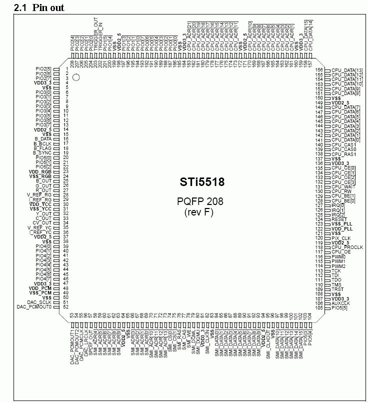 > ja wo sind denn die kleinen Pins? hast du schon mal google gefragt? Beim Eingeben von vibratto komme ich ganz schnell zu http://www.esstech.com/products/AVplayer/Prod_Briefs/pb6168A.pdf passt denn die Pinbelegung bezüglich Takt, Adress- und Datenleitungen wirklich zu deinem Player? Laut obigem Datenblatt sollte z.B. auf 49-50 beim vibratto ein Quarz liegen. Da seh ich aber nix bei deinem Bild vom 02.01.2007. Der Quarz scheint mir an der Seite ab Pin 105. Und zufälligerweise ist um Pin 120 rum beim STI5518 der Quarztakt. Passt also eher. Ich denke nicht daß da ein Quarz (selbst wenn er "nur" 12 MHz hat) am falschen (=entgegengesetzten) Ende der Platine plaziert wurde und der Takt sich da durch das gesamte Layout schlängelt