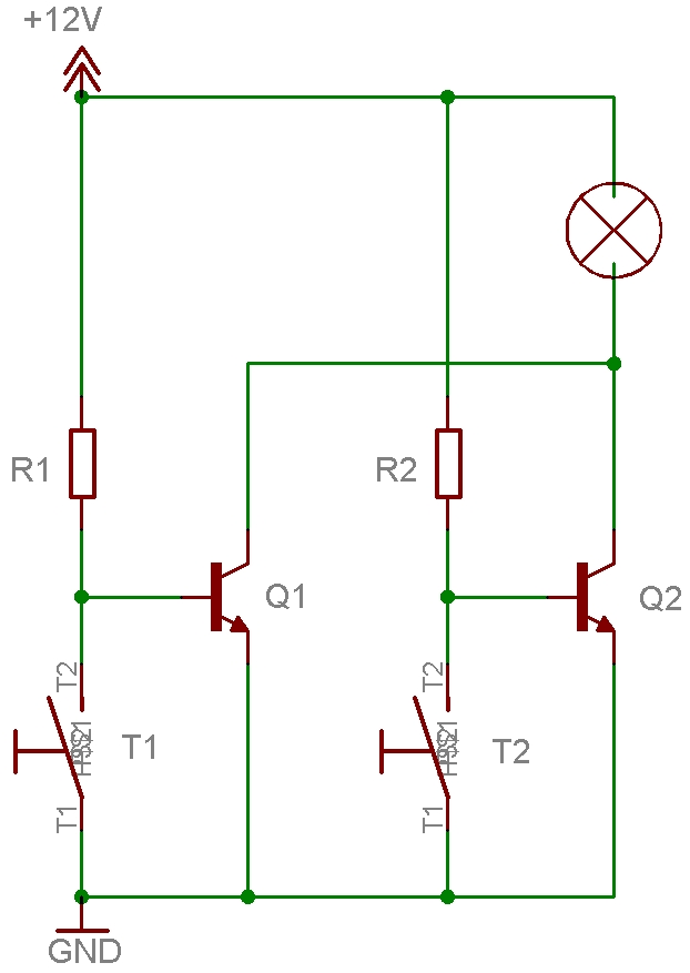 was hat denn so eine Schaltung für einen Sinn? Da kann ich ja gleich mehrere Schalter parallel zusammenschalten, wenn ich eine Lampe von mehreren Stellen aus schalten will! Dann spar ich mir wenigstens die überflüssigen Bauteile! Gruß Kurt