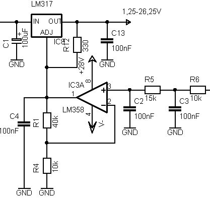 Ich habe das über einen OP gelöst: Der verstärkt das Signal auf 0-24V die an den Adjust Pin gelegt werden: Man erhält somit 1,25-25,25V.