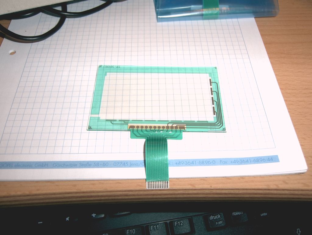 Hallo Habe 3 Touch Gläser zum Selbsbau eines Touchdisplays über. Wollte mal eine Steuerung damit bauen, doch leider keine Zeit dafür gehabt. Diese Touch Gläser passen auf normale 128x64 Displays. Zur Orientierung: Glas: lxb 88mm x 58mm aktive Toucfläche lxb 67mm x 33mm Das ganze ist in einer 4x8 Matrix aufgebaut. Das bedeutet 32 Touchfelder die über eine matrix Verchaltet sind. Ich müsste wenn gewünscht auch noch irgendwo einen C Code zur Ansteuerung haben. Ist aber wirklich einfach anzusteuern, im Prinzip wie eine Matrix aus Schaltern. Wird die Fläche berührt, wird ein Kurzschluss bei den Betreffenden X-Y Leitungen erreicht. Also Super Easy! Gekostet haben mich die mal 30 Euro das Stück. Würde sie für 15 Euro das Stück verkaufen! Bei Abnahme aller 3 Versandkostenfrei. Ansonsten 2,50 Versand! Bei Interesse oder Fragen einfach hier rein schreiben, oder Mail an mich. Passende Stecker für die Flexkabel leg ich natürlich auch bei! Gruss Darko Sabljo
