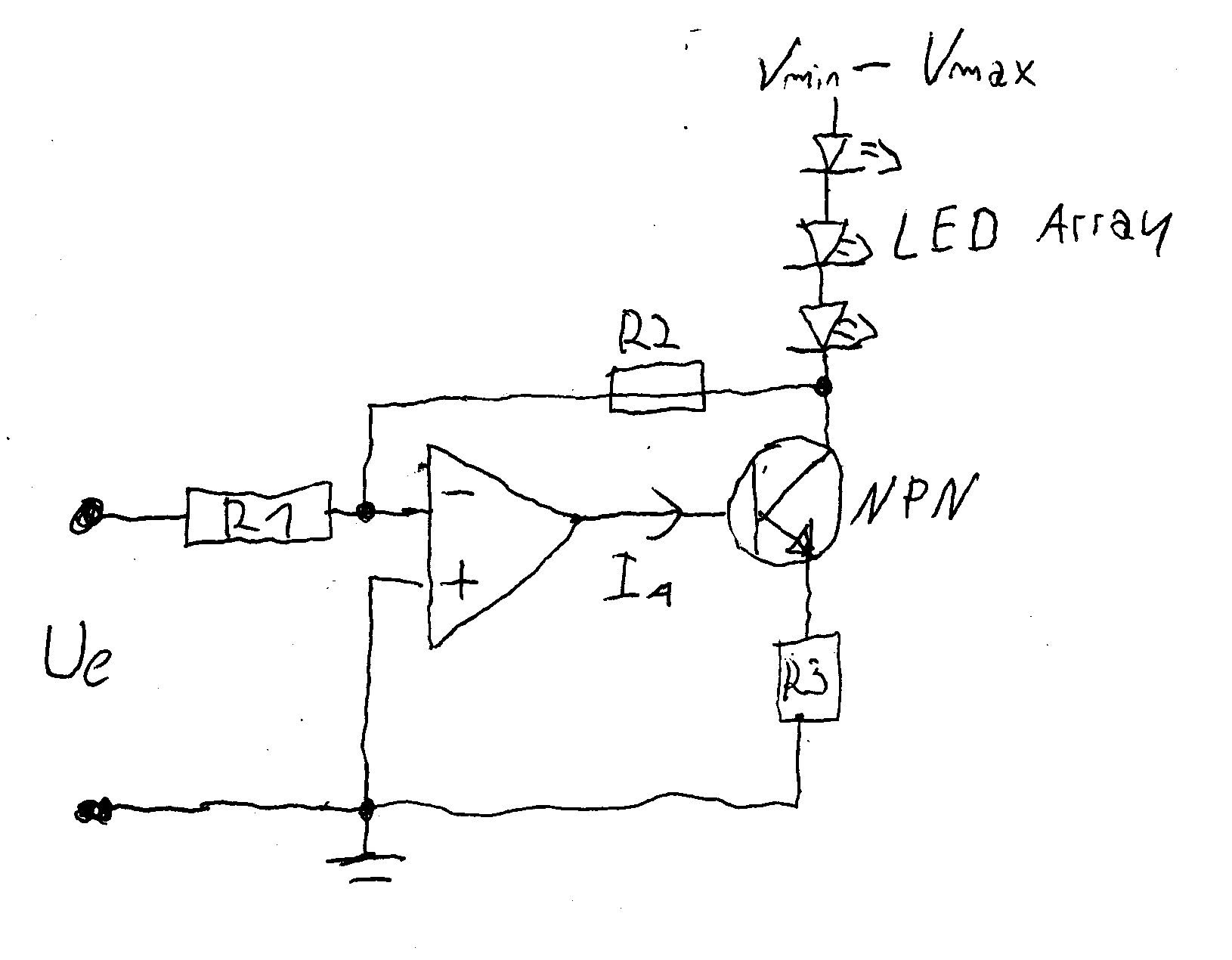 @Gasto Klar die Luxeon können pro LED 350mA ab, das ganze mal drei, also eher noch mehr. @Rahul Ich habe es leider nicht so mit der Analogelektronik, ich bin mehr der Digitale. Die Schaltung des Ops habe ich hierher http://batronix.com/elektronik/know-how/op-amp.shtml#05e Ich habe dann einfach den Lastwiderstand RL durch den Transistor ersetzt. Kannst du deine Schaltung auch ein bischen erleutern, ich will ja auch was lernen.. Grüsse