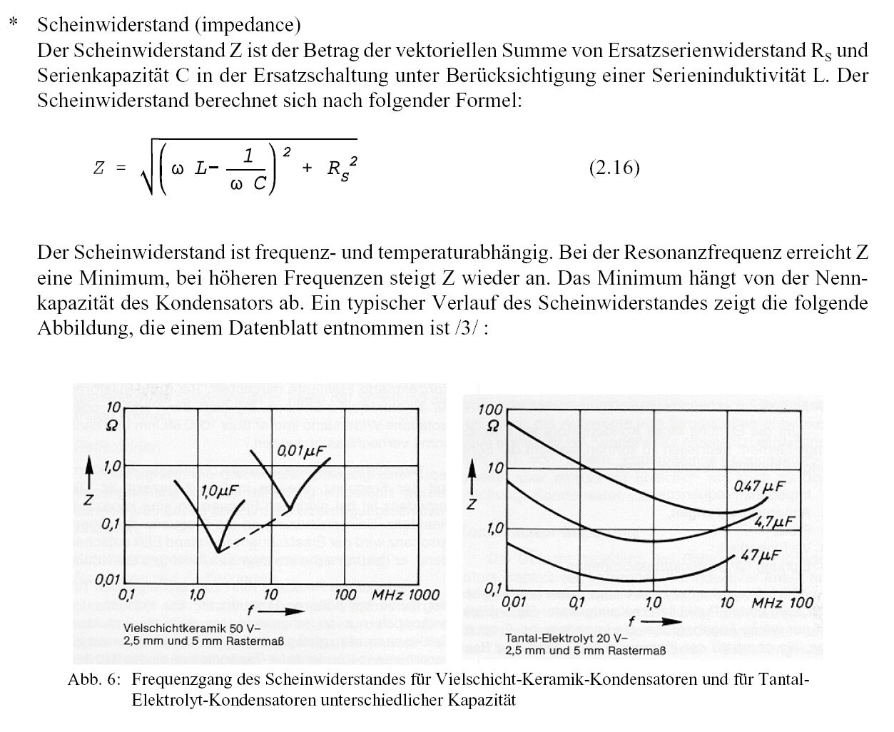 "fundiert erklären" - vielleicht reichen erstmal ein paar Impedanz-Messkurven eines Kondensator-Herstellers ? Ein 100nF 0805, 1,2mm dick: http://www.epcos.de/inf/mlcc/HF-Messkurven/X7R0805/PDF/X7R0805_100n_50V_1mm2.pdf Übersicht: http://www.epcos.de/web/generator/Web/Sections/DesignTools/CeramicCapacitors/Impedance/X7R/Page,locale=nn.html