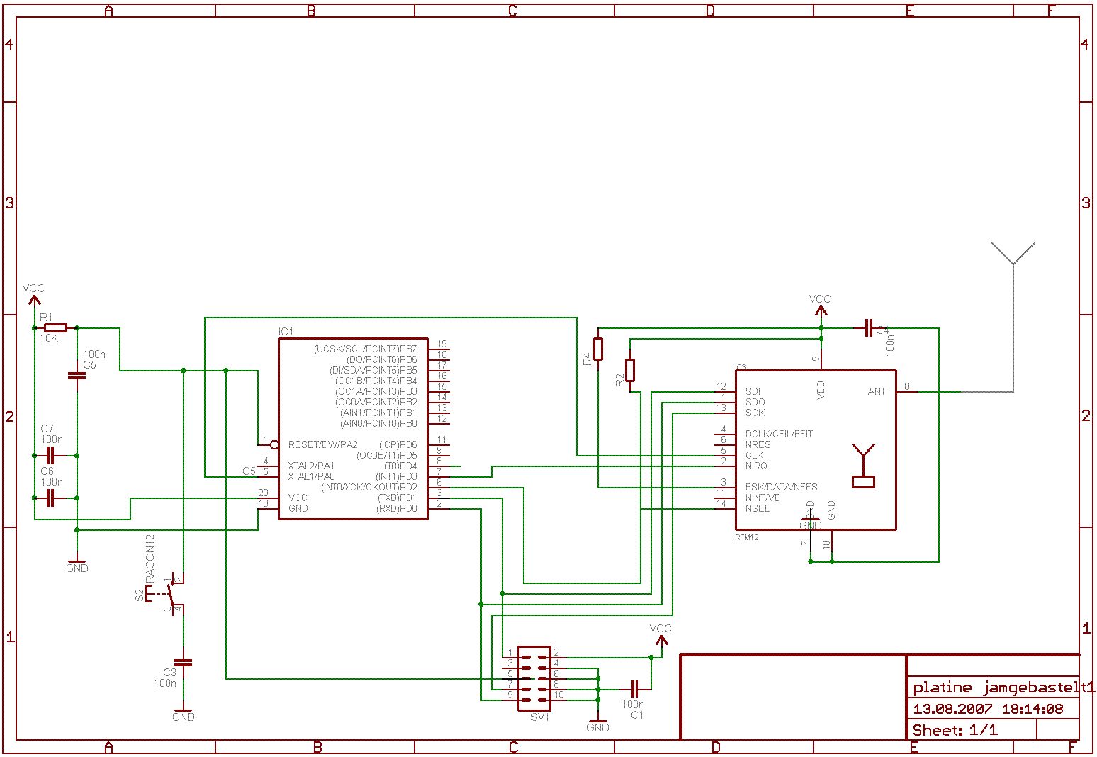 Ok sehr schön, hast den Code selber geschrieben? hab nur den von Polling runtergeladen und der sieht etwas anders aus :-) Kann ich auch die global.h bekommen? Die fehlt zum kompilieren... Möchte das nur kurz auf meinen Mega8 programmieren um den sender zu testen... hab zwar nur 8 Mhz intern aber ich denk das sollte dennoch funktionieren. Gruß Marc