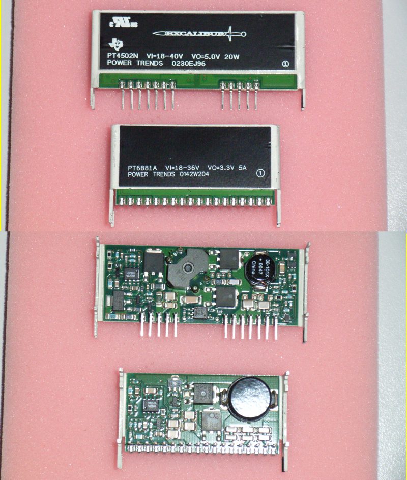Ich habe hier noch 2 DC/DC Wanlder aus einem Projekt übrig, die jedoch nicht verbaut wurden. Es handelt sich hierbei um golgende Typen: (beide von POWERTRENDS) Bild für beide, Anicht oben und unten im Anhang. PT4502N (isoliert) Eingangsspannung: 18-40VDC Ausgangsspannung: 5.0V 20W (also 4A) DIL Anschlußleiste, Modul stehend PT6881A (nicht isoliert) Eingangspannung: 18-36VDC Ausgangsspannung: 3.3V 5A (also 16.5W) DIL Anschlußleiste, Modul liegend