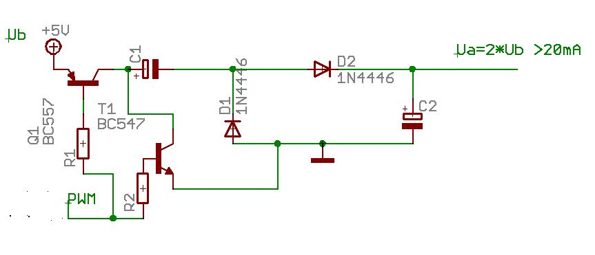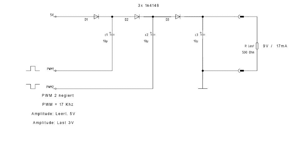 Hallo Axel, ich habe c1 und c3 aus 2 PWM Quellen gespeist.Eine negiert. Allerdings fehlt c2. Es werden nur 3 Dioden benötigt. Ist denn Deine Ladungspumpe Effektiver? Wigbert