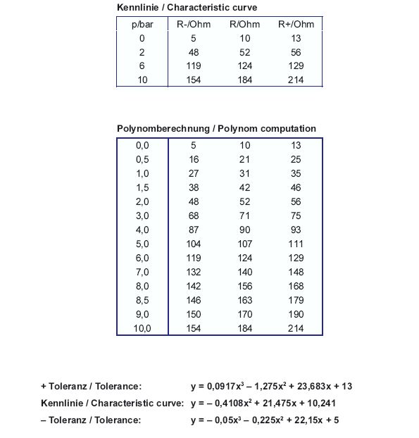 Also wenn ich mir den Toleranzbereich ansehe, ist da nichts mit 0,1Bar. Bis 2 Bar sinds bestenfalls 0,5 Bar und dann wirds rapide schlechter. Nimm ne simple Tabelle in 0,5Bar Schritten (= 19 Einträge) und gut is. Peter