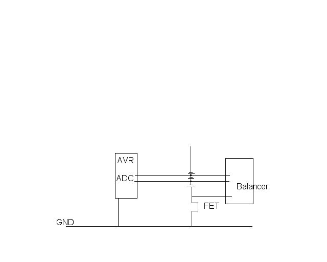 Hmm, wenn man den AVR, die Relais und die beiden FETs weglässt, funktioniert der Balancer ausgezeichnet. Habe ich auch schon gebaut. Ein wenig anders, ok. aber vom Prinzip das gleiche. Die Spannungsfolger am Ausgang der OPV habe ich nicht von Akku+ nach GND, sondern die Kollektoren nur zwischen die einzelnen LiPo Zellen geschaltet. Dann müssen die Transistoren nicht so heizen und die anderen Zellen bekommen gleich etwas mehr vom Ladestrom ab. Dieser soll sich ja so vetreilen, dass die Zellen gleichmässig voll werden. Wenn Du den Ladestrom dann an allen anderen Zellen vorbei leitest... Naja - das ist Geschmackssache und wurde schon woanders ausführlich diskutiert (rclineforum.de). Hat auch erstmal nichts mit deinem Problem zu tun. Der AVR soll ja augenscheinlich die Relais ansteuern. Was passiert mit dem Ausgang von zB. IC14a(der OPV ganz oben), wenn das Relais RE21 anzieht? Am inv.Eingang liegen ziemlich exakt 6/7tel der Akkuspannung und am nichtinv. Eingang Masse. Also wird der Ausgang ebenso gegen Massepotenzial tendieren. T52 wird voll durchsteuern und deine Balance durcheinander bringen. Das gleiche trifft für die anderen Kanäle zu. Ich bin mir darüber hinaus nicht sicher, ob der LM358 RAIL_to_RAIL kann.(Müsste evtl. gerade noch passen) R241 scheint ja ein "workaround" zu sein, der diesem Umstand Rechnung trägt. Ich such mal meine Schaltung raus. Aber nicht mehr heute - hatte ne anstrengende Woche... Du brauchst nicht die Lastseite vom Akkupack trennen, sondern - wenn überhaupt - musst Du dafür sorgen, dass die Treiberstufen hochohmig werden.