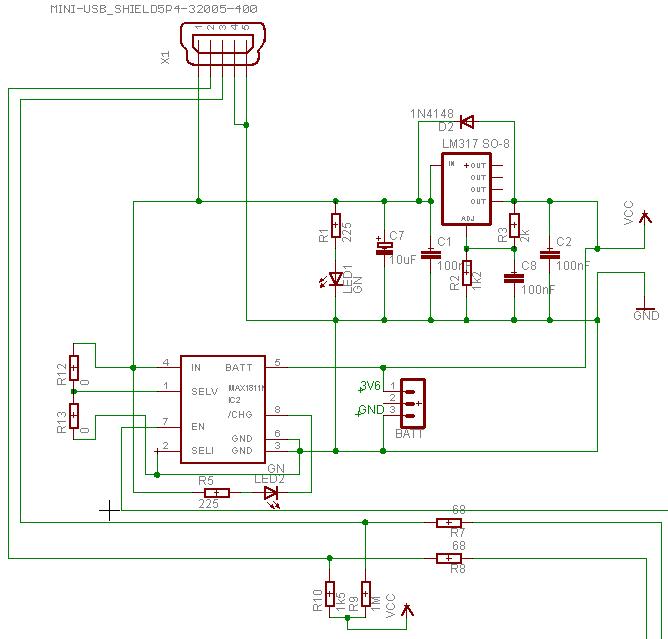 Hi und schönen Sonntag erstmal. Also ich habe ein Problem bei der USB Spannungs-Versorgung meines Atmega8L. und zwar kann ich das Gerät wunderbar an den Akku anschließen (siehe Bild im Anhang, Anschlußklemme BATT, ziemlich mittig), dann funktioniert alles wunderbar, die LED1 GN leuchtet.... So will ich nun aber Spannung vom USB her bekommen passiert rein garnichts. d.h. der atmega8L läßt sich nicht ansprechen und die LED1 GN leuchtet auch nicht.... Zumal auch der Laderegler (max 1811 esa) total überbrückt wird, also spannung aus dem lm317 direkt auf die batt geht, ohne den weg über den laderegler zu nehmen. Folgende Fehler habe ich in der Schaltung schon entdeckt: 1) Laderegler wird übergangen 2) Alle output-ins des lm-317 (so-8) sollten verbunden werden (habe ich bereits) 3) Leiterbahn von LED1 GN zu GND von BATT ist überflüssig fällt euch sonst noch was auf ?habe ich bei der beschreibung was vergessen ? ich hoffe ihr könnt mir ein paar tipps zur verbesserung geben, danke !