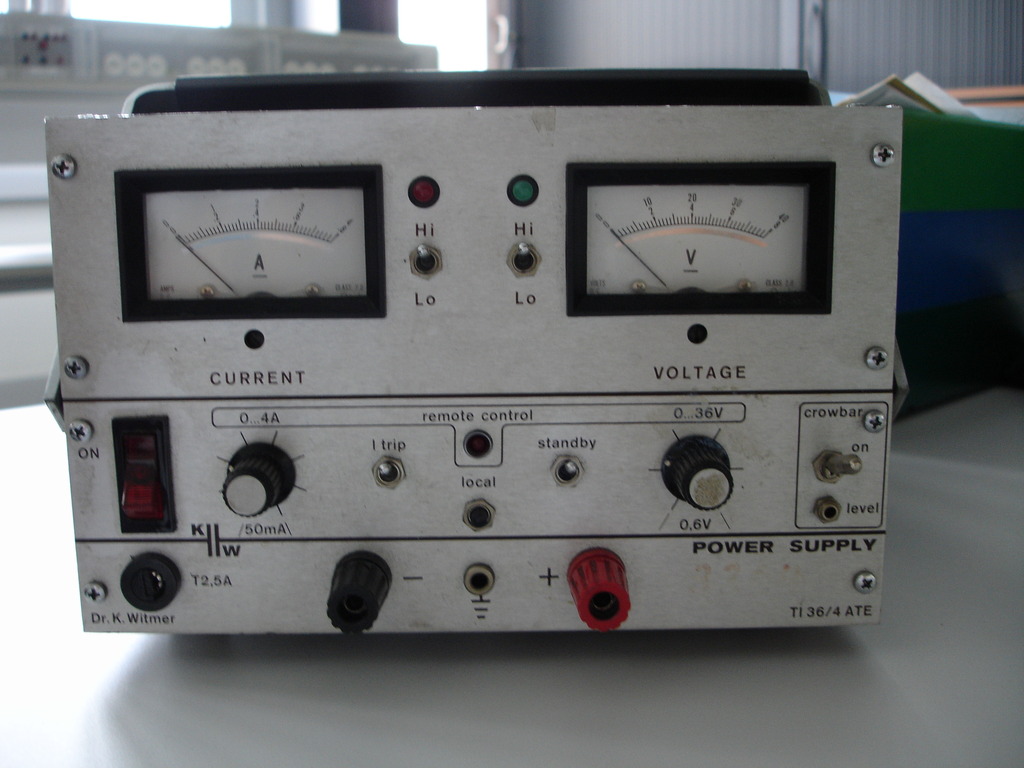 Guten Tag, Arbeite nun schon seit meinen Anfängen in der Elektronik mit meinem K.Widmer Netzgerät. Anscheinend hat es nun aber ausgedient. Wen ich das Gerät einschalte, blinken die beiden Led (oben in der Mitte). Ich glaube das der, der das Gerät entwickelt hat, mir damit ein Zeichen geben möchte... ich glaube das im Datenblatt irgendwo ein interessanter Satz wie, " Falls die Hi Leds blinken, wechseln sie bitte blabal..." aber ich habe kein Datenblatt und nach längerer Suche im Internet fand ich auch keine Hilfe. Hat zufällig auch jemand ein solches Netzgerät? Oder kann mir jemand sagen was kapput gegange ist. Kann keine Spannungen mehr einstellen nichts. 0V am Ausgang. Nur die netten Leds die blinken. Power Supply TI 36/4 ATE Dr.K.Witmer G¨sse Andreas