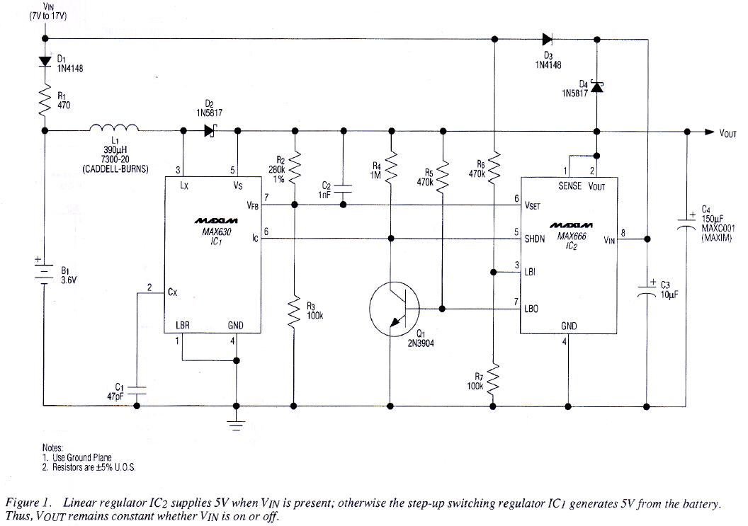 Der dateianhang beinhaltet eine schaltung zur unterbrechungsfreien 5-V Stromversorgung,... Kommt auf Vin spannung so greift diese von dort ab, ansonsten von der batterie, mit ein par modifikationen könnte diese auch für andere spannungen ausgelegt werden quelle: Proffessionelle Schaltungstechnik Band 8 http://pdfserv.maxim-ic.com/en/an/A0615.pdf grüüüüüße