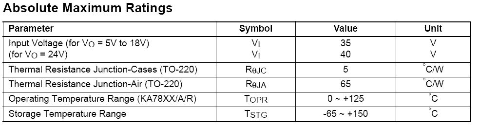 Hier einmal die "maximum ratings". Schaut so aus, als könnte man bis zu 35 V als U_Input wählen bei den Reglern von 7805 - 7818. Werden zwar ein wenig warm, aber das ja normal.