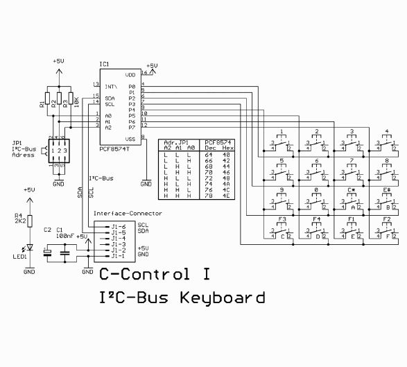 Ich habe die im Anhang abgebildete I2C-Tastatur an einem Atmega128 hängen. Mir wird nicht klar, wie man die Matrix ausliest. Habe sowas noch nie gemacht. Kann das vielleicht mal jemand grundsätzlich erklären? Nur mit einem I2C-Read durch den Master kann es ja nicht funktionieren. Muss ich vorher bestimmte Ports des PCF8574 auf High setzen? Gruß TechInfo