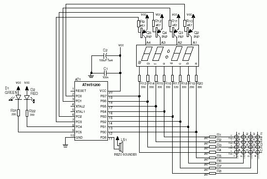 http://bascom-forum.de/index.php?action=dlattach;topic=10.0;attach=143;image auf dem Bild hier sind keine WIderstände an der Matrix. >Also: PB0 -> Draht -> Beinchen vom Taster 'a' -> > Draht -> Beinchem vom Taster 'b' -> > Draht -> Beinchem vom Taster 'c' -> > Draht -> Beinchem vom Taster 'd' -> > Widerstand -> Vcc da schreibst du aber von nem Widerstand. Ist das ein Pullup? Wenn ja, da könnte ich ja auch den internen des Mega32 nehmen, oder?