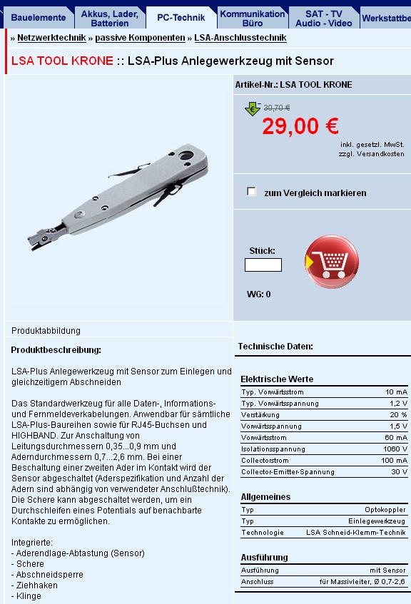 Siehe meinen Post weiter oben über TME, da klappt das auch mit der Lagerbestandsabfrage. Ich für meinen Fall werde in Zukunft soweit möglich bei TME bestellen. 5,90 Euro Versandkosten statt 10,08 Euro sind schon Grund genug.