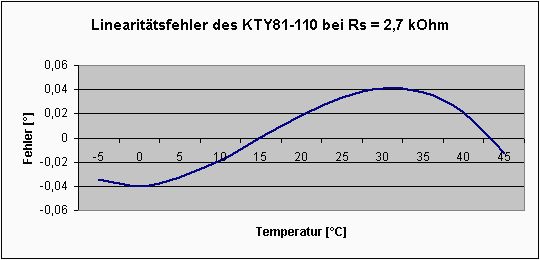 @ Läubi Mail@laeubi.de (laeubi) >Also ich weiß nicht... Aufwand? >Ein Widerstand zum lineariesieren, 2 Meßwerte zur kallibirerung (mit >einem Thermometer) und fertig, also für die Meisten Sachen mehr als >aureichend. >Und vorallem für Gehäusetemperatur wie der OP es machen will. Bitte mal nicht alles durcheinanderwerfen. 1.) Klar, für die Messung der Gehäusetemperatur tuts auch ein +/-2K Sensor. 2.) Es ging um die Behauptung, mit nem popeligen KTY und 2K7 Vorwiderstand 0,3K GENAUIGKEIT zu erreichen. Das ist schlicht falsch. 3.) Und wenn man 1K Genauigkeit durch Linearisierung und Kalibrierung erreichen will, muss man eben dieses tun. Und ob eine Zweipunktkalibrierung hier ausreicht weiss ich jetzt nicht. Für ein einzelnes Gerät fürs Hobby kein grosses Problem, für ne Serienproduktion praktisch ausgeschlossen. MfG Falk