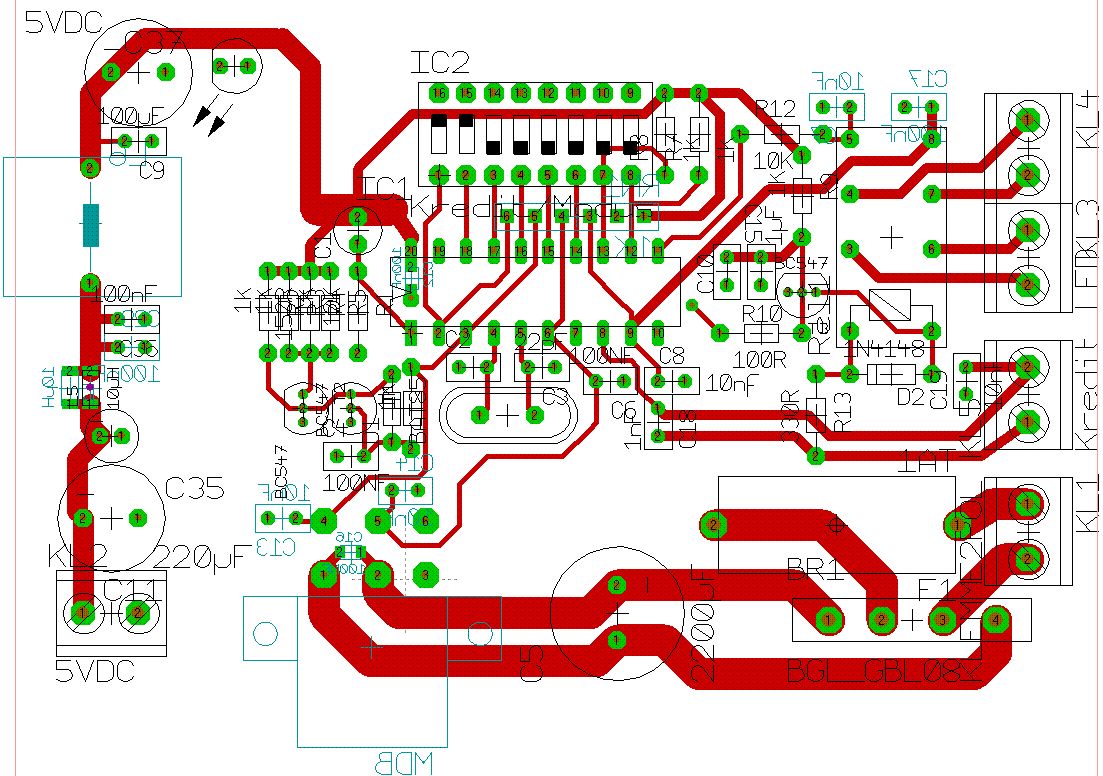 > Was für eine Platine ist es denn. So nach grosser High-Tec und schnellen > Signalen sieht das ja nicht aus. nene, da liegst schon richtig. is ne relativ simple schaltung. Im Prinzip handelt es sich um eine Erweiterungskarte mit der es möglich ist, an dem Gerät(Becherrücknahmeautomat) einen Schlüsselleser anzuschließen. Der Becherpfand wird dann nicht wie vorher üblich mit Münzen ausbezahlt sondern auf den Chipschlüssel gebucht. Schnelle Signale sind auf der Platine keine drauf. das schnellste signal kommt vom Quarz mit 12MHz. Der Bus taktet mit 9600 bits/s. mfg manfred