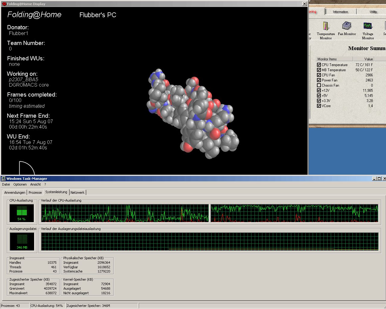 Folder@home kenne ich nicht, aber ich habe mal vor einiger Zeit seti auf der platte gehabt, dort konnte man ganz bequem einstellen wieviel % der cpu-Last seti zur verfügung steht, man konnte dann z.B. einstellen dass wenn der Bildschirmschoner läuft, seti 80& cpu-last bekommt, wenn er nicht läuft nur noch 10-20% so konnte man seti eignetlich unentweg laufen lassen ohne dass es stört. seit ihr sicher dass es sowas bei folder@home nicht gibt!? - wenn es nicht gleich den ganzen Arm von mir nimmt, würde ich es mir vielleicht auch installieren!