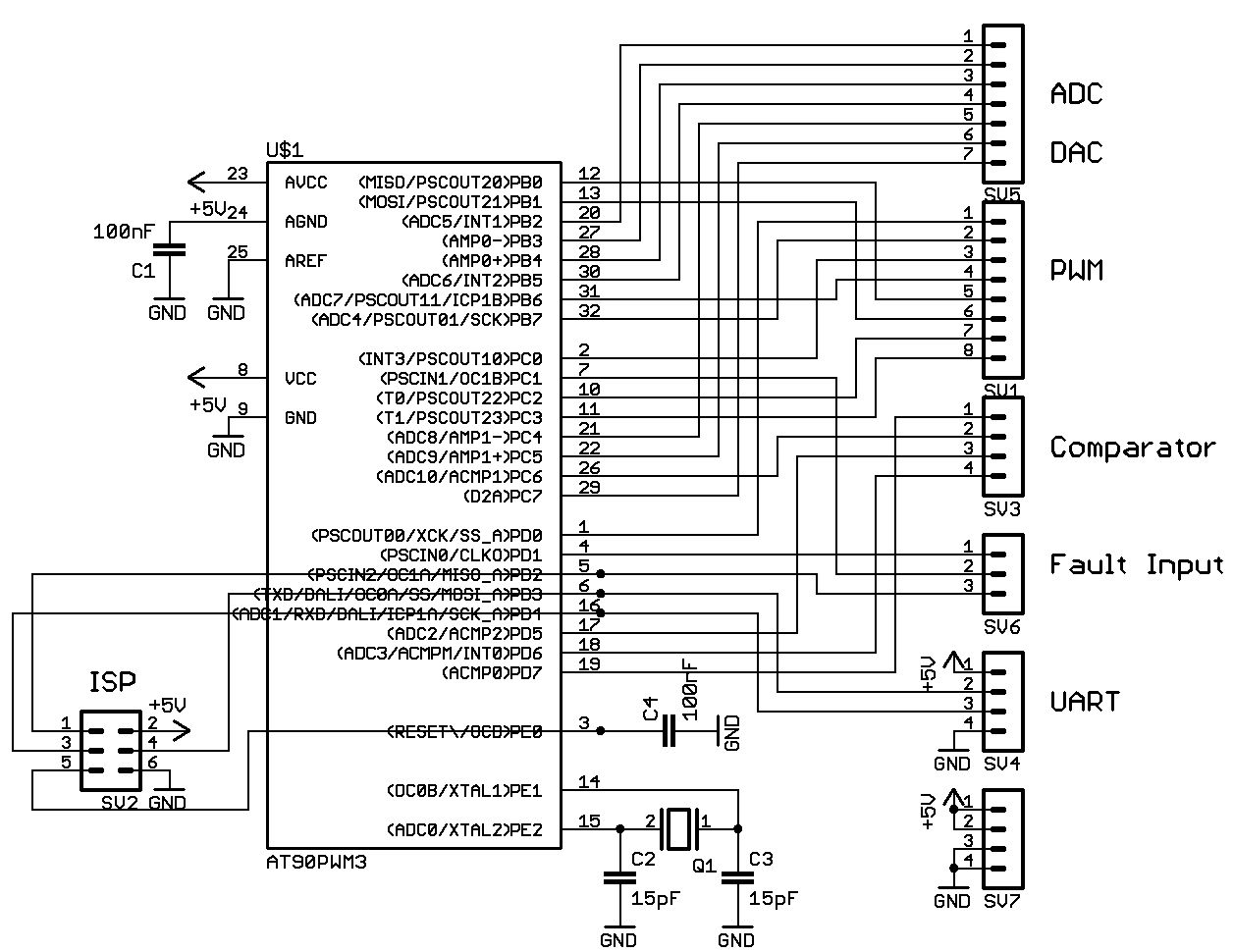 Als Controller käme auch der AT90PWM3B in Frage: Der hat spezielle