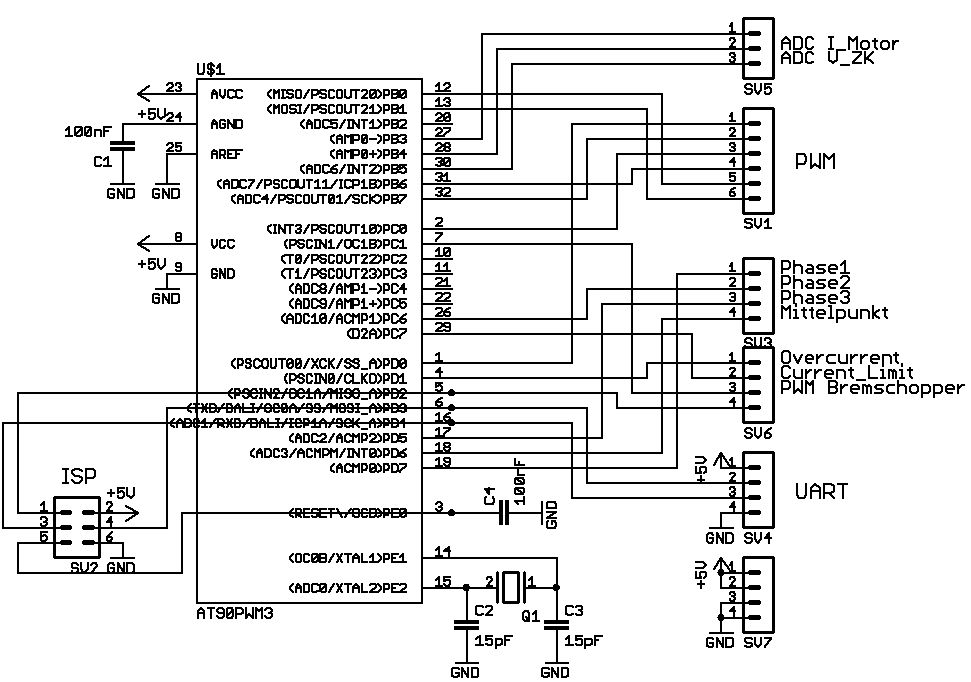 zusätzlichen AVR zu hängen, der über RS232 mit dem Motorcontroller