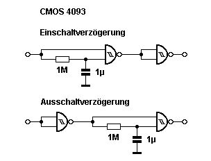 Besser ist es, die Funktionen zu trennen. Die erste Schaltung funktioniert entsprechend der obigen und erzeugt aus dem Tastendruck statisch EIN / AUS. Die zweite dann nachgeschaltet bringt die Verzögerung. Zu beachten ist, dass nach einem Schaltvorgang eine gewisse Zeit gewartet wird, dass sich der 1µ entladen kann. Wenn man zu schnell hintereinander schaltet, verringert sich die Verzögerungszeit entsprechend.