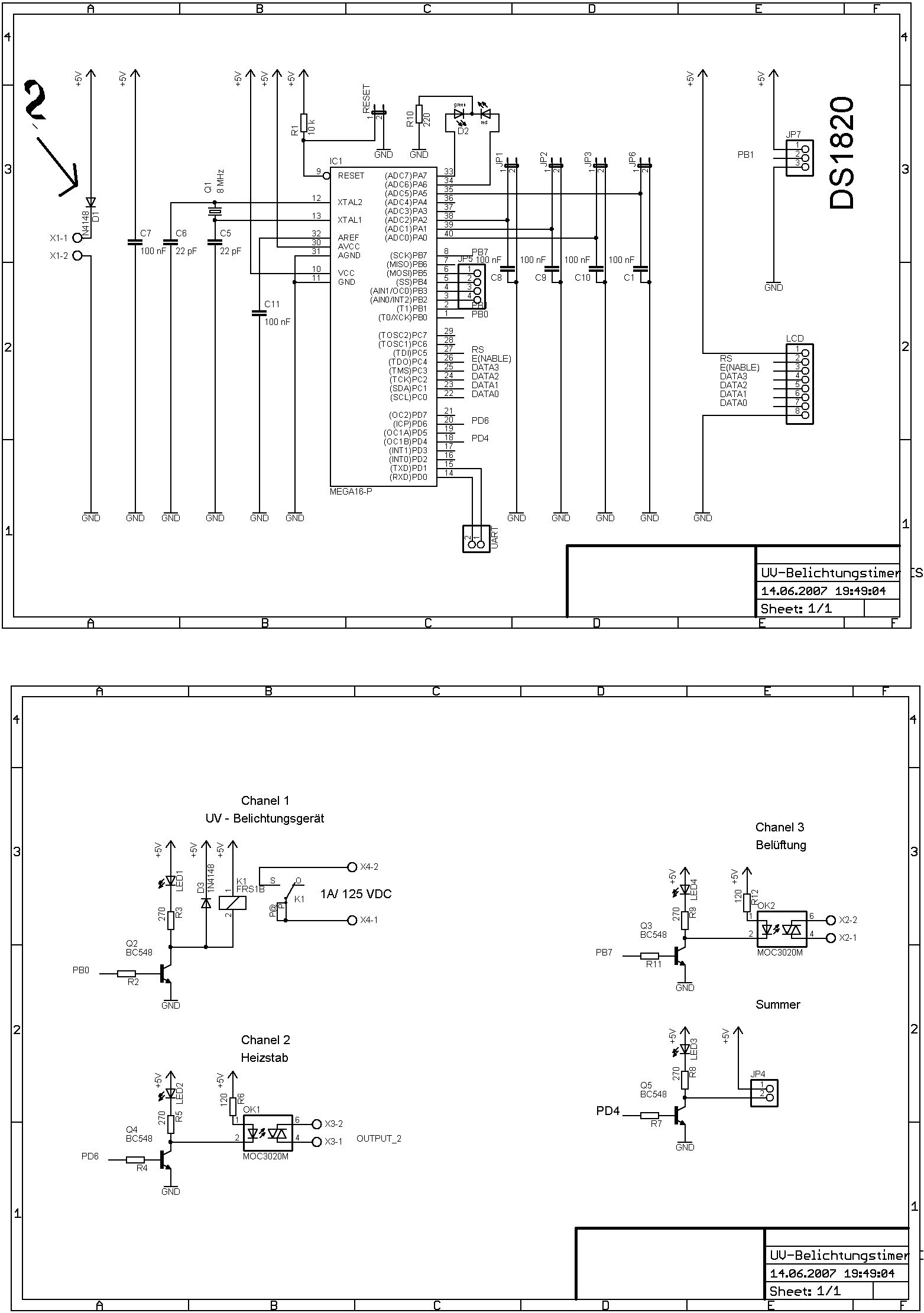 Hallo, Ich habe folgendes Problem: Ich habe die Schaltung (siehe Anhang) auf die Platine gebraucht. Das Layout ist einwandfrei. Lege ich nun Spannung U_betrieb = 5 V an, so schalten alle Ausgänge wie im Programm vorgesehen durch, d.h. das Board ist heile und funktioniert. Ich schließe nun auch das Display an. Ich initiallisiere das Display (auf dem testboard funktioniert das auch) und gebe ein "Hallo world" aus. Bei dem Test in meiner Schaltung sehe ich aber kaum etwas, also kein Hallo ... die Kontrasspannung stimmt. Überbrücke ich nun die Diode 1N4148, dann sehe ich es. Kann es sein, dass an der Diode so viel "Spannung" abfällt, dass das Display nicht mehr geht, aber der Controller ? Sind eigentlich doch nur etwa 0,7 V?