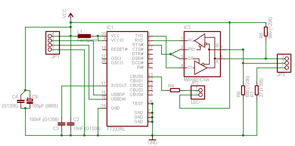 Hallo! Noch ein Problem: Ich wollte mir einen USB <> DMX-Wandler nach dem OpenSource-Vorbild von Enttec bauen. Hier zunächst der Link zum Plan: http://www.enttec.com/index.php?main_menu=Products&prod=70303&show=downloads Ich wollte aber auch nicht auf den Komfort eines FT232RL (anstelle eines FT232BM) verzichten und habe die Schaltung dementsprechend modifiziert. Doch nun tauchen die ersten Probleme auf (Vorweg: Mein Ziel ist es, dass meine Schaltung wie die von Enttec funktioniert, so dass ich wiederum keine neuen Treiber für die Software brauche): Ist es möglich die als LED-Ausgänge definierten CBUS0 & CBUS1 zu brücken um eine LED anzuschließen (wenn ja wie definiert sich hier der Vorwiderstand) oder muss ich den FT232 umprogrammieren? Des weiteren bin ich mir nicht sicher, ob die Optos (SFH-610) schnell genug sind und wie ich diese letzendlich verschalten soll! Schließlich will ich mit denen eine galvanische Trennung zur Sicherung der teuren DMX-Hardware haben. UND: Natürlich kann ich irgendwo anders nochmal Mist gebaut haben, habe also grade ein riiiiieeeeeesen Loch vor mir. Grüße sunflower_seed