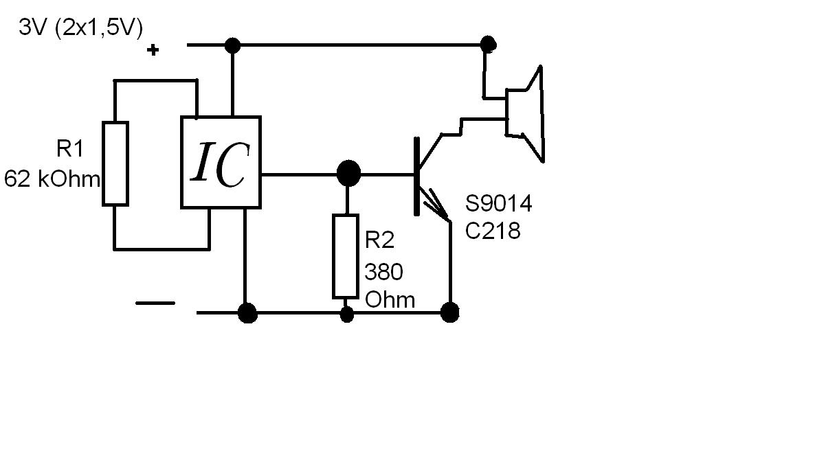 Hallo Elektroniker, ich habe heute eine Spielzeugeisenbahn von meinem Neffen bekommen zum reparieren. Die hat einen kleinen Motor drin damit sie fährt, eine Led mit Vorwiderstand die einfach nur leuchtet und ein Soundmodul (Schaltung siehe Anhang) die drei Teile funktionieren unabhängig von einander die ersten beiden gehen auch nur die Lok gibt kein Mucks von sich. Der Sound IC ist so ein vergossener Klecks der den Transistor ansteuert ich werde Morgen mal schauen ob der Transistor noch OK ist ich nehme an das da mal die Batterien falsch gepolt wurden denn eine Diode fehlt leider, ich werde sie dann aber reinlöten falls es der Transistor war. Frage: Falls nicht ist es Möglich mit nem kleinen Atmel Attinny oder so den Transistor zu steuern so dass der Lautsprecher ein Geräusch von sich gibt, (wenns geht ein TUTEN oder so) hat sich jemand damit schon mal beschäftigt? Kann R1 ein Teil von nem Resonator sein? Ich hatte mal mit nem Oszi gemessen konnte aber außer Gleichspannung nix messen, naja hab heute nur mal kurz mir die Sache angeschaut werde morgen mal genauer schauen für Anregungen bin ich dankbar wär schön wenn das Teil nicht in den Wohlstandsmüll fliegen muss. Schönes Wochenende an alle Martin