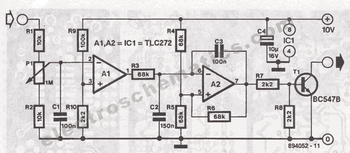 Mit P1 stelltst du die Empfinglichtkeit ein. Ja, du kannst da ein Relais anschließen, musst allerdinsg noch eine Freilaufdiode parallel zur Relais-Spule schalten (wie oben bei den NE555 Schaltungen). Ich denke, du kannst du Schaltung problemlos mit 12V statt 10V betreiben. Ist wohl besser, damit das Relais auch sicher anzieht.