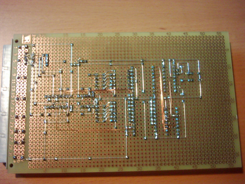 Hm, erinnert mich irgendwie an meine Ausbildung. :-) Nen LED-Würfel auf ner Lochrasterplatine mit 5 oder 6 IC's (ich weiß, es geht auch mit weniger, aber der Ausbilder hat die Schaltung vorgegeben.) und dann verdrahten, was das Zeug hielt. Bei uns hieß es damals, man solle etwa alle 8-10 Lötaugen nen Lötpunkt setzen, aber das kann jeder halten, wie er will. Lustig wirds nur, wenn man ein IC spiegelverkehrt verlötet. Ist mir leider mal passiert. Hab dann das IC genommen, die Pins auf die andere Seite gebogen, eingesteckt und gehofft, der Ausbilder merkt nix. :-) Das waren noch Zeiten.