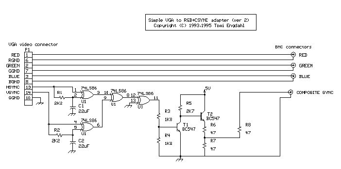 Hi, ich habe ein Gerät, was mir ein RGBVH Signal liefert. Also 3 Farben und 2 Sync. Mein Anzeigegerät kann jedoch nur 3 Farben und 1 Sync. Wie kann ich die beiden Syncs so passend zusammenlegen, dass es funktioniert? Gruß, Hendrik