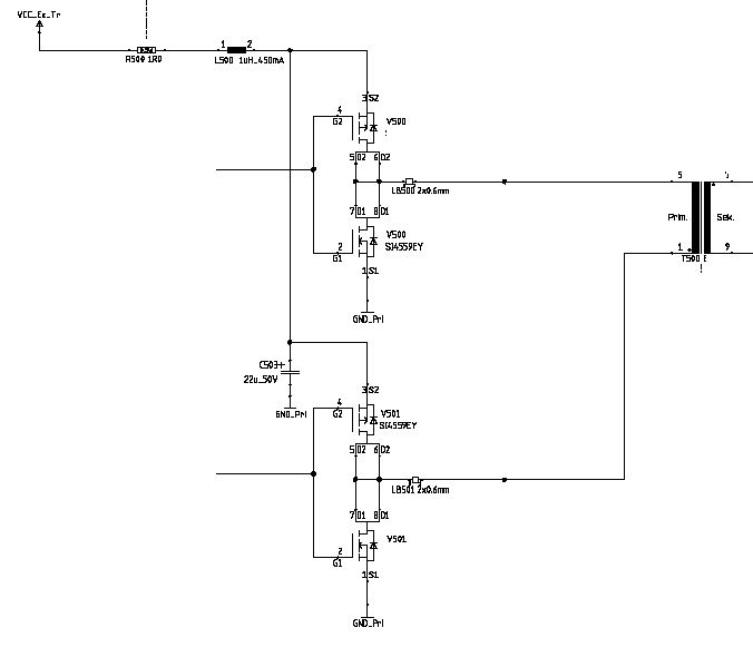 Hallo, Ich möchte eine Schaltung nachbauen, die einen diskreten DCDC-Wandler zur Leistungsübertragung nutzt. E shandelt sich um eine Mosfet-Brücke, die auf einen Transformator schaltet. In der Versorgung der Mosfets befindet sich nun wie im Schaltplan zu sehen ein Widerstand mit 1 Ohm, eine Induktivität von 1uH und ein Kondensator mit 22uF. Wofür sind diese Bauteile genau gedacht, und wie werden sie ausgelegt? Der Elko ist noch klar, aber was ist mit dem Widerstand und der Induktivität. Stellen die Bauteile zusammen ein Filter da? Wie berechnet man diesen? Als LC-Filter betrachtet errechne ich eine Grenzfrequenz von 33,9 kHz, der Wandler wird aber mit 4,5kHz betrieben. Außerdem habe ich mal nach Induktivitäten gesucht und zwei gefunden: Eine ist eine HF-Induktivität, bei der die Induktivität bei 8Mhz angegeben ist, die andere hat die Induktivität bei 1kHz angegeben. Welche nehme ich, und wie kann ich die beiden vergleichen, brauchbare Kurven sind in den Datenblättern nicht angegeben. Vielen Dank für eure Hilfe Gruß Klaus