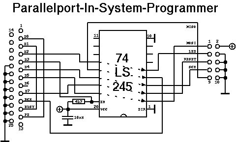 >VCC (4,99V) und GND bekommt er vom ISP Stecker Adapter Schaltplan habe >ich an dem ersten Beitrg angehangen. Woher soll VCC kommen ? Aus dem Parallelport ? Nö, da musst du schon noch ein externes Netzteil anschliessen.